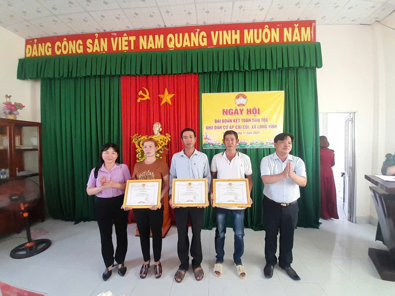 Chiều ngày 11/11/2025, tại Nhà văn hoá ấp Cái Cối, xã Long Vĩnh, Ban Công tác Mặt trận ấp tổ chức Ngày hội Đại đoàn kết toàn dân tộc nhân kỷ niệm 95 năm Ngày truyền thống Mặt trận Tổ quốc Việt Nam (18/11/1930 - 18/11/2025), đây là ấp điểm của xã Long Vĩnh.