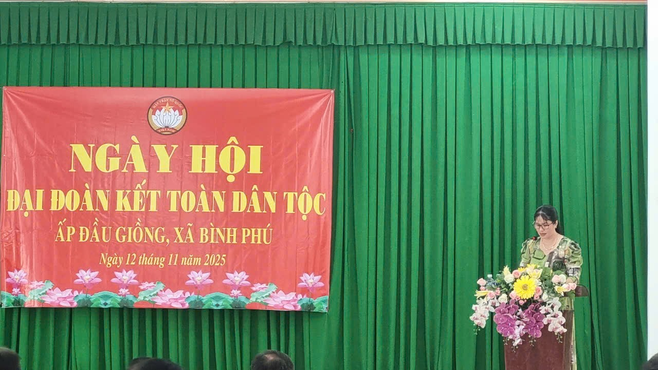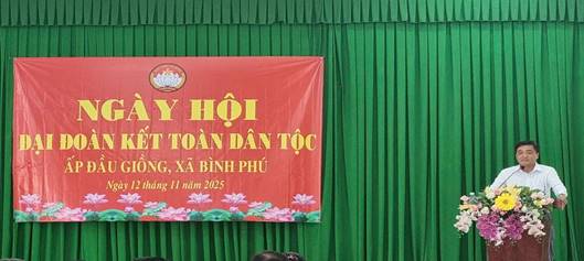 Ngày hội Đại đoàn kết toàn dân tộc năm 2025 được tổ chức vào ngày 12/11/2025 tại ấp Đầu Giồng, điểm của xã Bình Phú, trong không khí vui tươi, phấn khởi với nhiều hoạt động ý nghĩa như các trò chơi dân gian, giao lưu văn nghệ, ca hát, thu hút đông đảo cán bộ, đảng viên và nhân dân tham gia.