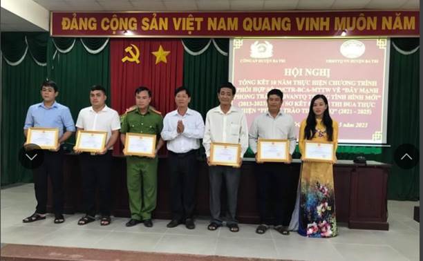 Qua 10 năm thực hiện Chương trình phối hợp, công tác xây dựng phong trào “Toàn dân bảo vệ ANTQ trong tình hình mới” trên địa bàn huyện Ba Tri có nhiều chuyển biến tích cực. Ủy ban MTTQ, Công an huyện Ba Tri và các tổ chức thành viên phối hợp đẩy mạnh công tác thông tin, tuyên truyền, giáo dục nâng cao nhận thức cho cán bộ, chiến sĩ, đoàn viên, hội viên và các tầng lớp Nhân dân về công tác bảo đảm an ninh trật tự... để nêu cao ý thức cảnh giác, chủ động phòng ngừa. Cụ thể, đã tổ chức 23.393 cuộc phát động phong trào TDBVANTQ; củng cố, nâng chất 129 nhóm nòng cốt tuyên truyền pháp luật; kiện toàn 591 Tổ NDTQ, 64 Hội đồng bảo vệ ANTT ấp. 10 năm qua, đã hòa giải gần 3.247 vụ việc mâu thuẫn trong nội bộ Nhân dân...