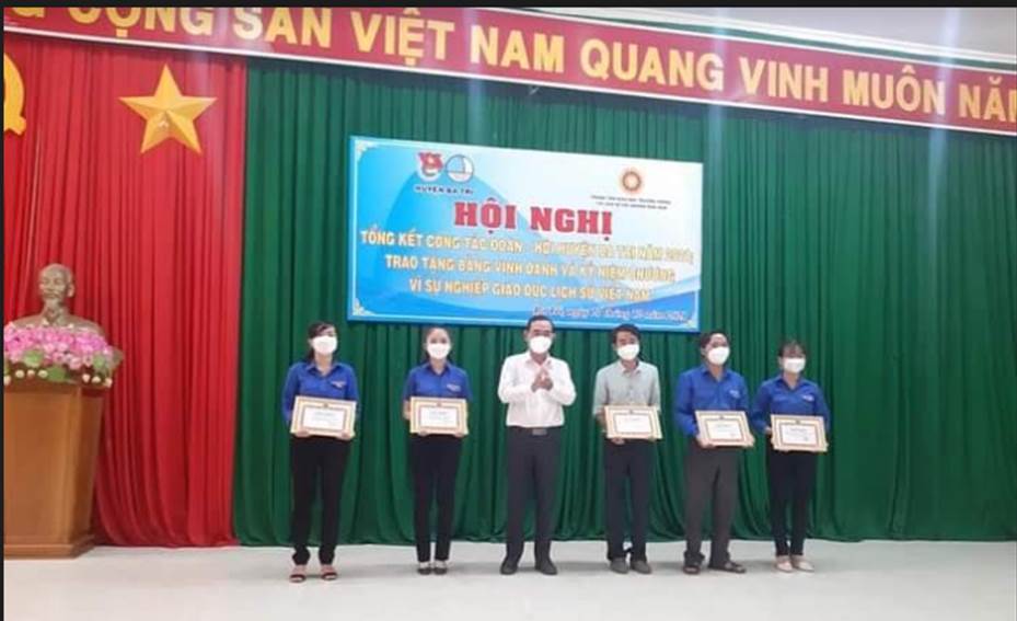 Tại hội nghị, có 10 tập thể và 15 cá nhân có thành tích xuất sắc trong công tác Đoàn và phong trào thanh niên 2021 được các cấp tặng bằng khen. Đồng thời tặng Bằng vinh dự và Kỷ niệm chương “Vì sự nghiệp Giáo dục Truyền thống Lịch sử Dân tộc” của Trung tâm Giáo dục Truyền thống Lịch sử phía Nam cho 15 cá nhân là lãnh đạo, nguyên lãnh đạo và Tổng phụ trách Đội các trường học trên địa bàn huyện.