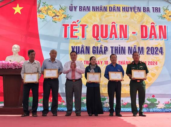 Tại lễ tổng kết, UBND huyện, Ban Tổ chức Tết Quân – Dân huyện Ba Tri năm 2024 đã khen thưởng nhiều cá nhân, tập thể có thành tích xuất sắc trong thực hiện các hoạt động và trao giải thưởng các hội thi, hội thao trong khuôn khổ hoạt động Tết Quân – Dân huyện Ba Tri năm 2024.