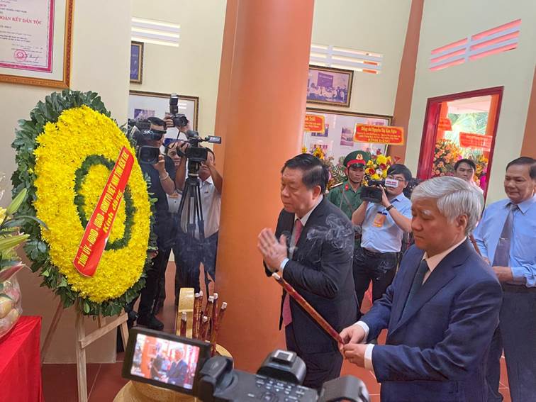 Đ/c Đỗ Văn Chiến, Bí thư Trung ương Đảng, Chủ tịch Ủy ban Trung ương MTTQ Việt Nam dâng hương tại Đền thờ đồng chí Huỳnh Tấn Phát.