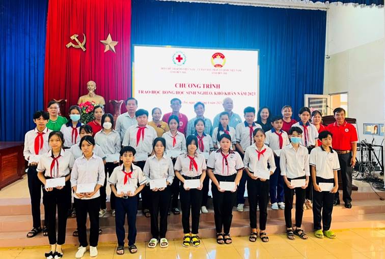 Ngày 27 tháng 6 năm 2023, tại hội trường Ủy ban nhân dân huyện Châu Thành, Hội Chữ thập đỏ tỉnh Bến Tre phối hợp với Ủy ban Mặt trận Tổ quốc Việt Nam tỉnh tổ chức trao tặng 20 suất học bổng cho các em học sinh từ lớp 6 đến lớp 11 có hoàn cảnh khó khăn, hiếu học của các huyện Bình Đại, Châu Thành, Chợ Lách và Mỏ Cày Bắc. Tổng trị giá là 100.000.000 đồng do Ủy ban Trung ương Mặt trận Tổ quốc Việt Nam trích từ Quỹ vì người nghèo hỗ trợ.