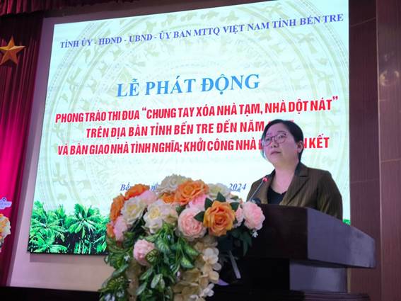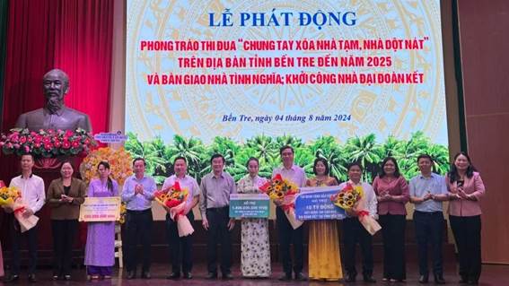 Ngày 04 - 8 - 2024, Tỉnh ủy, Hội đồng nhân dân, Ủy ban nhân dân, Ủy ban MTTQ Việt Nam tỉnh Bến Tre tổ chức Lễ phát động phong trào thi đua “Chung tay xóa nhà tạm, nhà dột nát” trên địa bàn tỉnh Bến Tre đến năm 2025 và bàn giao nhà tình nghĩa, khởi công nhà Đại đoàn kết.