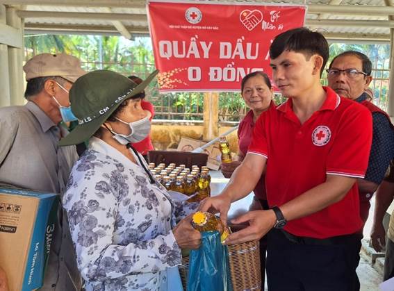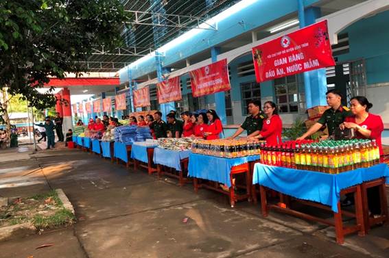 Cán bộ và tình nguyện viên Chữ thập đỏ cùng bà con đi chợ Tết