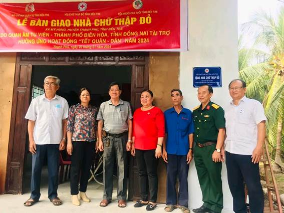 Thực hiện hoạt động Tết Quân – Dân Xuân Giáp Thìn năm 2024 . Ngày 19 và 20 tháng 1 năm 2024, Hội Chữ thập đỏ tỉnh Bến Tre phối hợp với Bộ Chỉ huy Quân sự tỉnh và Hội Người Cao tuổi tỉnh tổ chức bàn giao 2 căn nhà Chữ thập đỏ cho 2 hộ nghèo ở xã Đại Hòa Lộc, huyện Bình Đại và xã Mỹ Hưng, huyện Thạnh Phú do Quan Âm Tu Viện thành phố Biên Hòa, tỉnh Đồng Nai hỗ trợ thông qua sự vận động của Hội Chữ thập đỏ tỉnh.