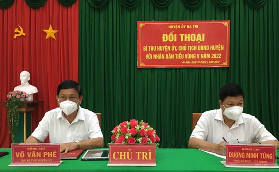 Sáng ngày 01/4/2022, Bí thư Huyện ủy Võ Văn Phê, Chủ tịch UBND huyện Dương Minh Tùng đã có buổi đối thoại với Nhân dân các xã tiểu vùng V của huyện (gồm: An Hiệp, An Ngãi Trung, An Phú Trung, An Ngãi Tây và Tân Hưng).