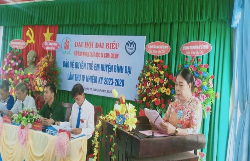 Ngày 21/6/2023 Hội Nạn nhân chất độc da cam/dioxin-Bảo vệ quyền trẻ em huyện Bình Đại tổ chức Đại hội lần thứ IV nhiệm kỳ 2023-2028. Bà Võ Thị Thủy - Phó Chủ tịch Hội Nạn nhân chất độc da cam/dioxin-Bảo vệ quyền trẻ em tỉnh Bến Tre, ông Võ Văn Quân - Phó Chủ tịch UBND huyện cùng các ban ngành, đoàn thể huyện và 60 đại biểu chính thức về dự đại hội.
