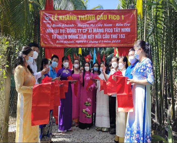 Cắt băng khánh thành cầu giao thông nông thôn.