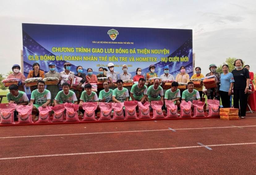 Tại chương trình đá bóng giao lưu đã tặng 85 suất quà cho nạn nhân chất độc da cam và cựu thanh niên xung phong (trong đó có 55 suất quà cho nạn nhân chất độc da cam , mỗi suất quà trị giá 350.000 đồng do Câu lạc bộ bóng đá Doanh nhân trẻ tỉnh Bến Tre tặng; 30 suất quà cho cựu thanh niên xung phong, mỗi suất quà trị giá khoảng 700.000 đồng do Hommetex- Nụ cười mới tặng). Tổng giá trị hơn 40.250.000 đồng.