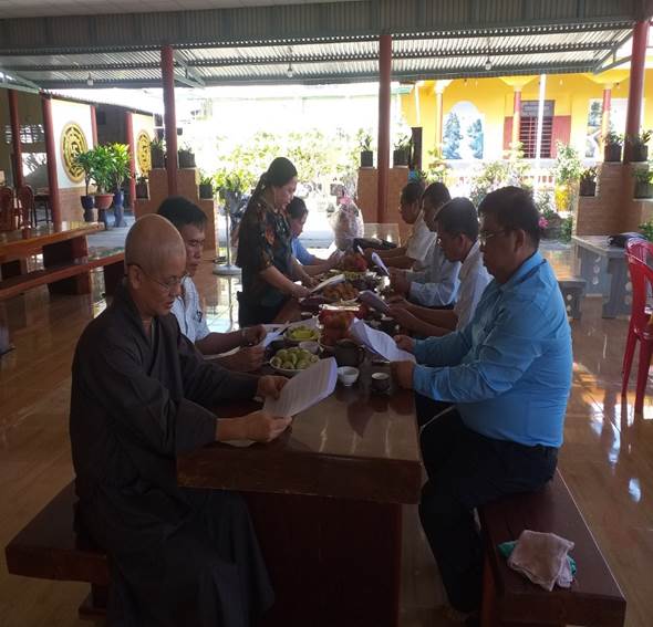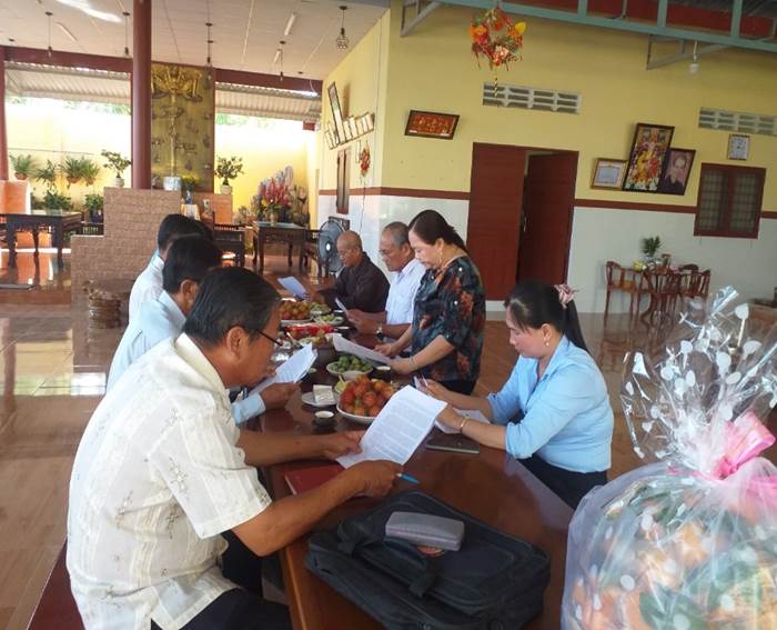 Chiều ngày 10/5/2023, tại Chùa Tân Linh, xã Thạnh Phước, huyện Bình Đại, Ban Thường trực Ủy ban MTTQ Việt Nam huyện phối hợp với Ban Thường trực Ủy ban MTTQ Việt Nam xã Thạnh Phước và các đơn vị có liên quan triển khai kế hoạch xây dựng mô hình Chùa Tân Linh “Tự phòng, tự quản về An ninh trật tự” năm 2023.