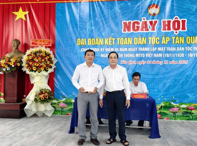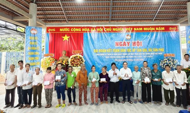 Ngày 04/11/2025, tại ấp Tân Qui, xã Tân Phú, tỉnh Vĩnh Long, Ban Công tác Mặt trận ấp phối hợp với cấp ủy, chính quyền địa phương tổ chức Ngày hội Đại đoàn kết toàn dân tộc năm 2025 - chào mừng kỷ niệm 95 năm ngày thành lập Mặt trận Tổ quốc Việt Nam (18/11/1930 – 18/11/2025). Đây là một trong 09 khu dân cư được chọn tổ chức Ngày hội Đại đoàn kết toàn dân tộc điểm của tỉnh năm 2025.