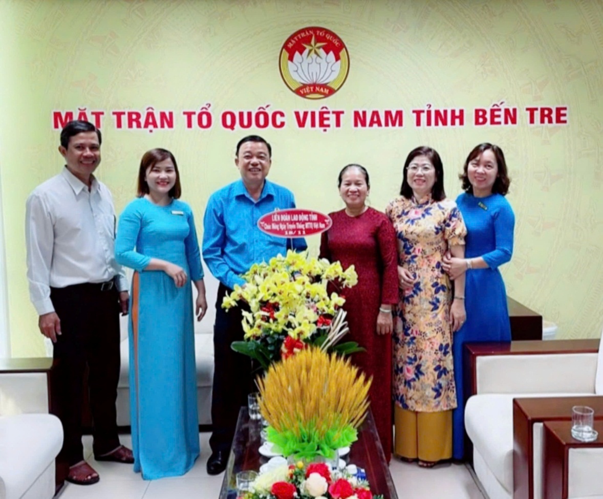 Nhân dịp kỷ niệm 94 năm Ngày thành lập Mặt trận dân tộc thống nhất Việt Nam - Ngày truyền thống Mặt trận Tổ quốc Việt Nam (18/11/1930 - 18/11/2024), ngày 18/11 đại diện lãnh đạo các cơ quan, đơn vị: Hội Liên hiệp Phụ nữ tỉnh, Đoàn Thanh niên Cộng sản Hồ Chí Minh tỉnh, Liên đoàn Lao động tỉnh, Hội Nông dân tỉnh, Đảng ủy - Ban Giám đốc Công an tỉnh Bến Tre, Đảng ủy - Bộ Chỉ huy Bội đội Biên phòng tỉnh Bến Tre, Ban đại diện Hội Người cao tuổi tỉnh, Hội Bảo vệ quyền lợi người tiêu dùng tỉnh, Ngân hàng Nông nghiệp và phát triển nông thôn chi nhánh Bến Tre đến chúc mừng ngày truyền thống Mặt trận Tổ quốc Việt Nam. Riêng Đảng ủy - Bộ Chỉ huy Quân sự tỉnh, Ngân hàng Đầu tư và Phát triển Việt Nam chi nhánh Bến Tre gửi lẵng hoa chúc mừng.