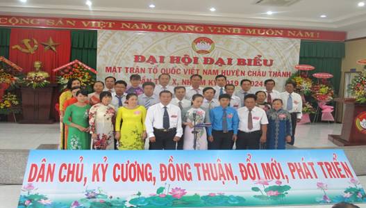 Ngày 23-24/5/2019, Ủy ban Mặt trận Tổ quốc Việt Nam huyện Châu Thành tổ chức Đại hội đại biểu Mặt trận Tổ quốc Việt Nam huyện lần thứ X, nhiệm kỳ 2019 - 2024. Dự Đại hội có: ông Huỳnh Quang Triệu, Ủy viên Ban Thường vụ Tỉnh ủy, Phó Chủ tịch Hội đồng nhân dân tỉnh; bà Đặng Thị Phượng, Phó Chủ tịch Ủy ban Mặt trận Tổ quốc Việt Nam tỉnh; ông Trương Minh Nhựt, Tỉnh ủy viên, Bí thư Huyện ủy; quý mẹ Việt Nam anh hùng; anh hùng lực lượng vũ trang nhân dân; lãnh đạo Hội đồng nhân dân; Ủy ban nhân dân huyện; các vị nguyên là lãnh đạo huyện; đại diện lãnh đạo các ban, ngành, đoàn thể huyện; Bí thư Đảng ủy các xã, thị trấn cùng 135 đại biểu chính thức của Đại hội.
