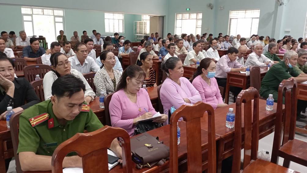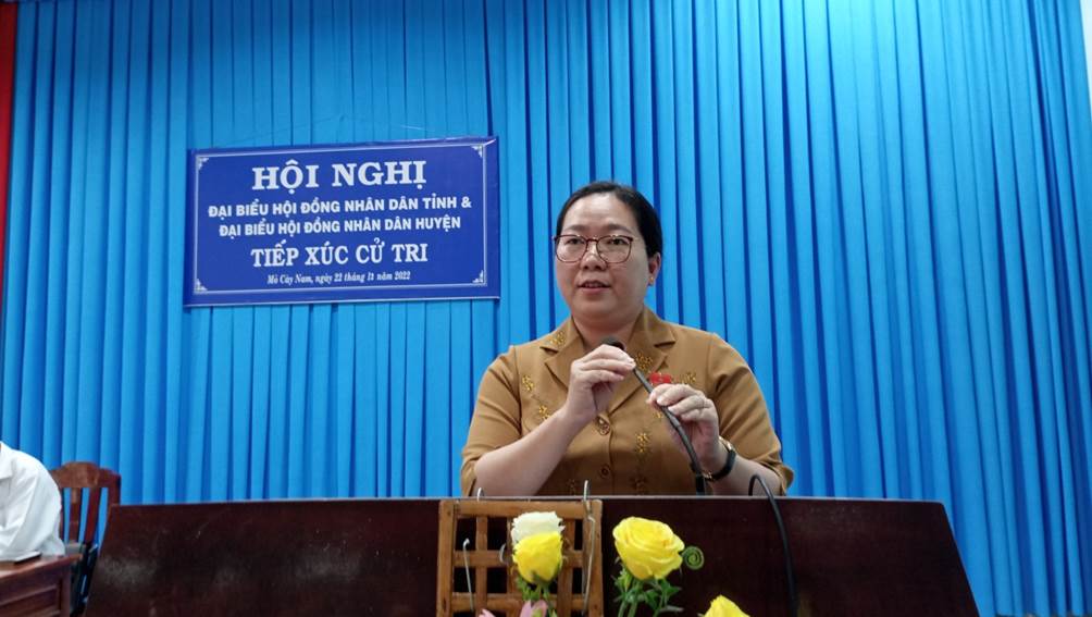 Sáng ngày 22/12/2022, tại hội trường xã Bình Khánh tổ đại biểu Hội đồng nhân dân tỉnh gồm: Bà Nguyễn Thị Hồng Nhung, Ủy viên Ban Thường vụ Tỉnh ủy, Chủ tịch Ủy ban MTTQ Việt Nam tỉnh Bến Tre; ông Nguyễn Việt Thành, Phó Chủ tịch UBND huyện Mỏ Cày Nam; cùng các đại biểu HĐND huyện có buổi tiếp xúc bà con cử tri 2 xã An Định, Bình Khánh, huyện Mỏ Cày Nam.