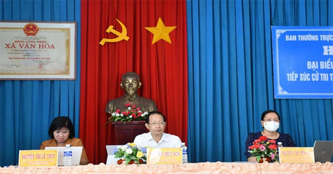 Đại biểu Quốc hội đơn vị tỉnh Bến Tre gồm: Ông Nguyễn Trúc Sơn - Phó Chủ tịch Thường trực UBND tỉnh, Trưởng Đoàn ĐBQH tỉnh; bà Nguyễn Thị Lệ Thủy - Phó Chủ nhiệm Ủy ban Khoa học, Công nghệ và Môi trường của Quốc hội; bà Nguyễn Thị Yến Nhi - Phó Trưởng đoàn chuyên trách Đoàn ĐBQH tỉnh. Tại điểm tiếp xúc, các ĐBQH đã báo cáo dự kiến nội dung, chương trình kỳ họp thứ 3, Quốc hội khoá XV; một số hoạt động an sinh xã hội nổi bật của Đoàn ĐBQH tỉnh từ đầu nhiệm kỳ đến nay; kết quả trả lời các kiến nghị của cử tri trước và sau Kỳ họp thứ 2, Quốc hội khóa XV.