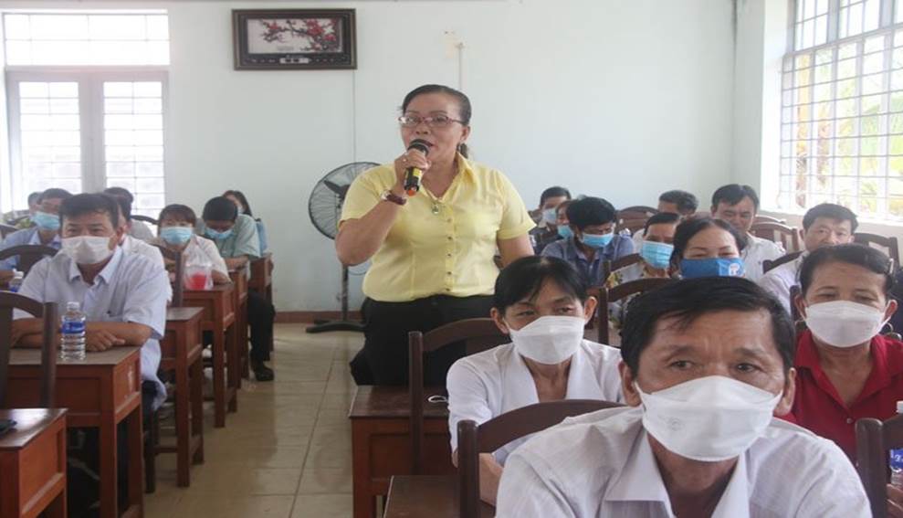 Cử tri xã Bình Khánh nêu ý kiến tại buổi tiếp xúc