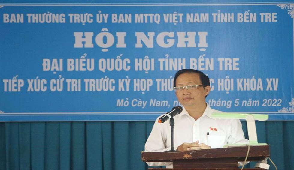Cử tri huyện Mỏ Cày Nam đã bày tỏ niềm vui trước những kết quả nổi bật của đất nước, của tỉnh trong thời gian qua, nhất là kết quả trong công tác phòng, chống dịch Covid-19 và sự phục hồi phát triển kinh tế - xã hội. Đồng thời mong muốn các ĐBQH tỉnh tiếp tục quan tâm, lắng nghe và phản ánh kịp thời các ý kiến, kiến nghị, nguyện vọng chính đáng của cử tri.
