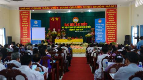 Phát biểu tại đại hội, ông Lê Kiến Tính, Bí thư Huyện ủy ghi nhận những đóng góp của MTTQ Việt Nam huyện nhiệm kỳ qua; đã đa dạng hóa nội dung, phương thức hoạt động, triển khai thực hiện có hiệu quả các Cuộc vận động, phong trào thi đua yêu nước ở đại phương. Trong nhiệm kỳ tới ông chỉ đạo: “MTTQ Việt Nam huyện tiếp tục phát huy sức mạnh khối đại đoàn kết toàn dân tộc, thực hiện tốt vai trò, trách nhiệm trong hệ thống chính trị và đời sống xã hội, thực hiện thắng lợi Nghị quyết Đại hội Đảng các cấp và Nghị quyết Đại hội Mặt trận tổ quốc Việt Nam tỉnh, huyện. Thực hiện tốt các Cuộc vận động “Toàn dân đoàn kết xây dựng nông thôn mới, đô thị văn minh”, Cuộc vận động “Ngày vì người nghèo”, Cuộc vận động “Người Việt Nam ưu tiên dùng hàng Việt Nam” … Nhằm góp phần cùng huyện thực hiện thắng lợi nhiệm vụ chính trị ở địa phương”.