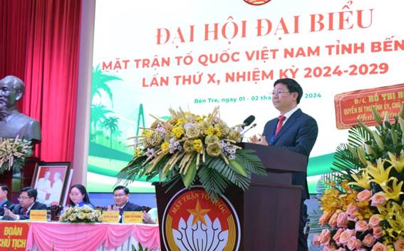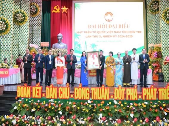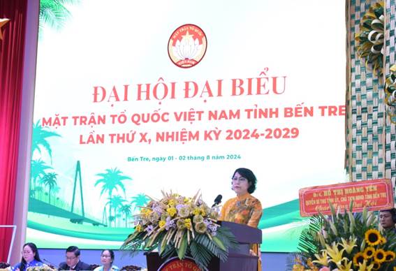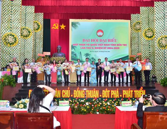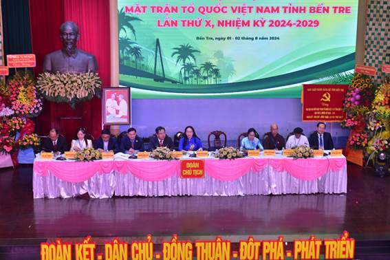 Ngày 01,02/8/2024, tại hội trường lớn Ủy ban nhân dân tỉnh Bến Tre đã diễn ra Đại hội đại biểu MTTQ Việt Nam tỉnh lần thứ X, nhiệm kỳ 2024 - 2029. Đại hội có sự tham dự của bà Nguyễn Thị Kim Ngân, nguyên Ủy viên Bộ Chính trị, nguyên Chủ tịch Quốc hội nước CHXHCN Việt Nam; bà Trần Thị Bé Nhân, Phó Cục trưởng Cục An ninh chính trị nội bộ Bộ Công an; ông Đặng Thuần Phong, Phó Chủ nhiệm Ủy ban xã hội của Quốc hội; bà Nguyễn Thị Lệ Thủy, Phó Chủ nhiệm Ủy ban Khoa học-Công nghệ và Môi trường của Quốc hội; bà Trần Thị Thanh Lam, Ủy viên thường trực Ủy ban xã hội của Quốc hội; Thiếu tướng Vũ Thành Đức, Phó Chánh Thanh tra Bộ Quốc phòng; các vị nguyên lãnh đạo các cơ quan Trung ương; bà Tô Thị Bích Châu, Phó Chủ tịch Ủy ban Trung ương MTTQ Việt Nam, đại diện Ban Thường trực, lãnh đạo các ban của Mặt trận Trung ương; ông Trần Thanh Lâm - Phó Bí thư thường trực Tỉnh ủy Bến Tre; ông Trần Ngọc Tam - Phó Bí thư Tỉnh uỷ, Chủ tịch UBND tỉnh; các vị nguyên Bí thư Tỉnh ủy, Chủ tịch UBND tỉnh qua các nhiệm kỳ; các vị trong Ban Thường vụ Tỉnh ủy, lãnh đạo các ban, ngành, tổ chức chính trị-xã hội tỉnh, quý Mẹ VNAH, AHLLVTND, AHLĐ thời kỳ đổi mới, lãnh đạo MTTQ Việt Nam tỉnh qua các nhiệm kỳ, đại biểu MTTQ Việt Nam các tỉnh bạn dự chúc mừng Đại hội. Đặc biệt là sự có mặt của 316/320 đại biểu chính thức của đại hội.