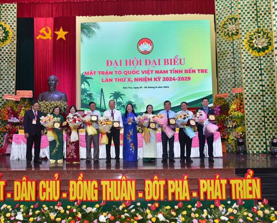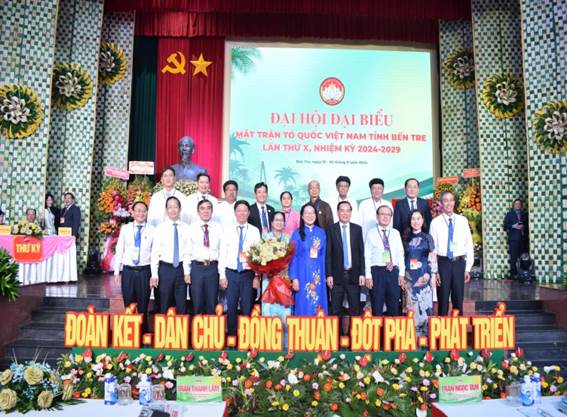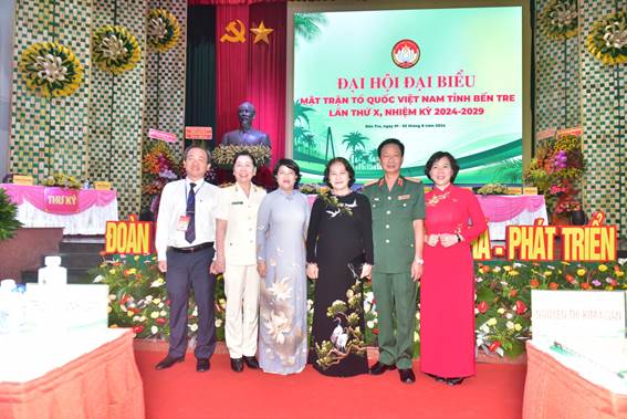 Với tinh thần thống nhất cao, Đại hội nhất trí thông qua Nghị quyết Đại hội đại biểu MTTQ Việt Nam tỉnh lần thứ X, nhiệm kỳ 2024 - 2029 với 03 khâu đột phá, 04 nhiệm vụ trọng tâm và 07 chỉ tiêu chủ yếu. Đại hội đã hiệp thương, thống nhất cử 95 vị tham gia Ủy viên Ủy ban MTTQ Việt Nam tỉnh Bến Tre khóa X, nhiệm kỳ 2024 - 2029 và tiến hành hiệp thương cử đoàn đại biểu dự Đại hội đại biểu toàn quốc MTTQ Việt Nam lần thứ X, nhiệm kỳ 2024 - 2029 gồm 7 đại biểu chính thức và 02 đại biểu dự khuyết. Tại hội nghị lần thứ nhất Ủy ban MTTQ Việt Nam tỉnh khóa X, bà Nguyễn Thị Hồng Nhung, Ủy viên Ban Thường vụ Tỉnh ủy, Chủ tịch Ủy ban MTTQ Việt Nam tỉnh khóa IX tiếp tục được tín nhiệm tái cử Chủ tịch Ủy ban MTTQ Việt Nam tỉnh khóa X, nhiệm kỳ 2024 - 2029. Cùng 03 Phó Chủ tịch chuyên trách, 01 Phó Chủ tịch không chuyên trách và 05 Ủy viên thường trực (02 Trưởng Ban, Chánh Văn phòng và 02 UVTT phụ trách lĩnh vực).
