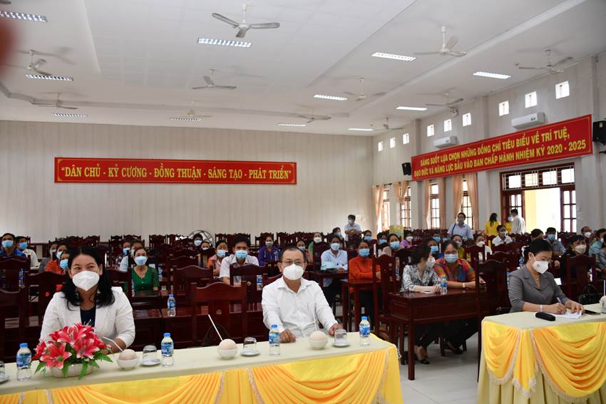 Đón tiếp đoàn có ông Huỳnh Quang Triệu - Ủy viên Ban Thường vụ Tỉnh ủy, Phó Chủ tịch Hội đồng nhân dân tỉnh; bà Nguyễn Thị Bé Mười - Tỉnh ủy viên, Phó Chủ tịch Ủy ban nhân dân tỉnh; bà Nguyễn Thị Hồng Nhung - Tỉnh ủy viên, Chủ tịch Ủy ban Mặt trận Tổ quốc Việt Nam tỉnh, cùng với lãnh đạo Huyện ủy, Hội đồng nhân dân, Ủy ban nhân dân, Ủy ban Mặt trận Tổ quốc Việt Nam huyện Giồng Trôm.