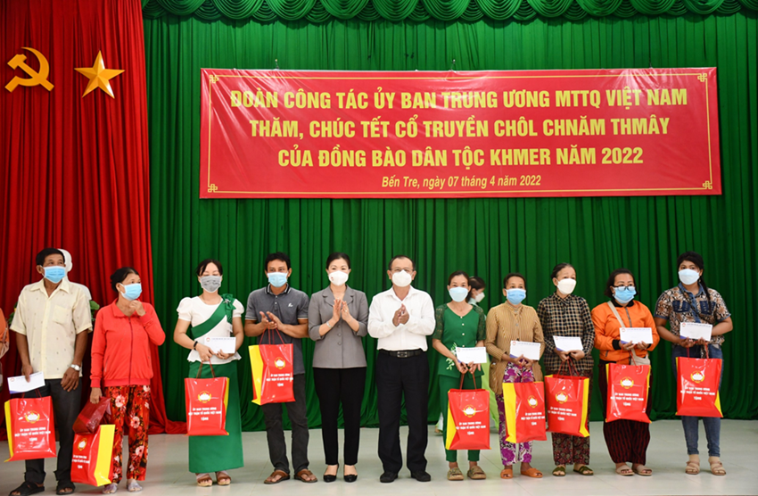 Sáng ngày 07 tháng 4 năm 2022, Đoàn công tác Trung ương do bà Trương Thị Ngọc Ánh, Phó Chủ tịch Ủy ban Trung ương Mặt trận Tổ quốc Việt Nam làm trưởng đoàn đã có buổi thăm, chúc tết và tặng quà đồng bào dân tộc Khmer tại huyện Giồng Trôm nhân dịp Tết cổ truyền Chôl Chnăm Thmây năm 2022. Tham gia đoàn công tác còn có các ông, bà Ban dân tộc Ủy ban Trung ương Mặt trận Tổ quốc Việt Nam, Ban Công tác phía Nam.
