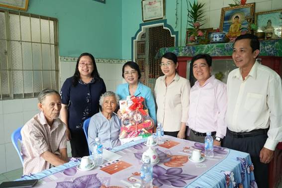 Đoàn lãnh đạo TP. Hồ Chí Minh đến thăm hỏi và trao quà đến bà Khưu Thị Em ở thị trấn Châu Thành