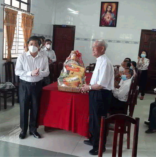 Đ/c Bí thư Tỉnh ủy tặng quà Linh mục Nguyễn Văn Thượng – Hạt trưởng Hạt Thạnh Phú- Chánh sở Nhà thờ Thạnh Phú