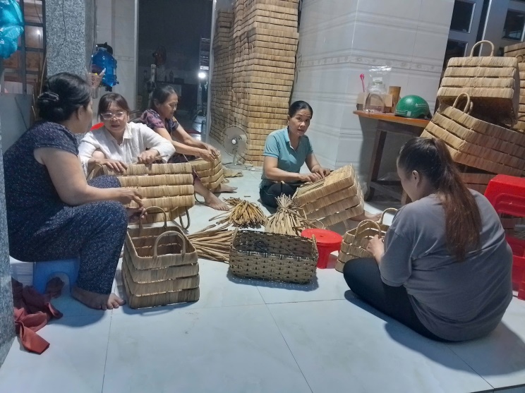 Chị Hiền cho biết: “Nghề đan lục bình cần sự tỉ mỉ, khéo léo và cả kiên nhẫn nên phù hợp với phụ nữ. Trung bình cứ 2 tuần là chị em tập hợp lại để giao hàng và nhận nguyên liệu về đan tiếp. Khi có mẫu mới sẽ hướng dẫn kỹ thuật đan vài ngày cho chị em rành rồi nhận nguyên liệu về đan. Đây là nghề rất phù hợp để tăng thêm thu nhập trong thời gian nhàn rỗi”.