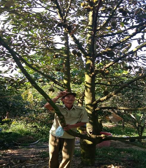 Năm 2014 ông quyết tâm chuyển đổi 4000m2 đất vườn từ cây chôm chôm Java sang cây sầu riêng thái, với quyết tâm không ngừng nổ lực, không ngừng học hỏi kinh nghiệm của các nhà vườn đi trước, tích cực tham gia các buổi tập huấn, hội thảo về cây sầu riêng để về áp dụng trên mảnh vườn của mình. Đến nay cây đã cho trái ổn định, ước tính thu hoạch hàng năm khoảng 8 tấn trái, giá bán bình quân 65.000 đồng/kg, mỗi năm trừ chi phí ông thu về gần 400 triệu đồng, không dừng lại ở đó hiện nay ông còn tham gia tổ hợp tác sầu riêng theo hướng hữu cơ nhằm giảm chi phí đầu tư, tăng năng suất và chất lượng sản phẩm, xuất khẩu ra thị trường quốc tế hứa hẹn một tiềm năng mới cho cây sầu riêng của địa phương.