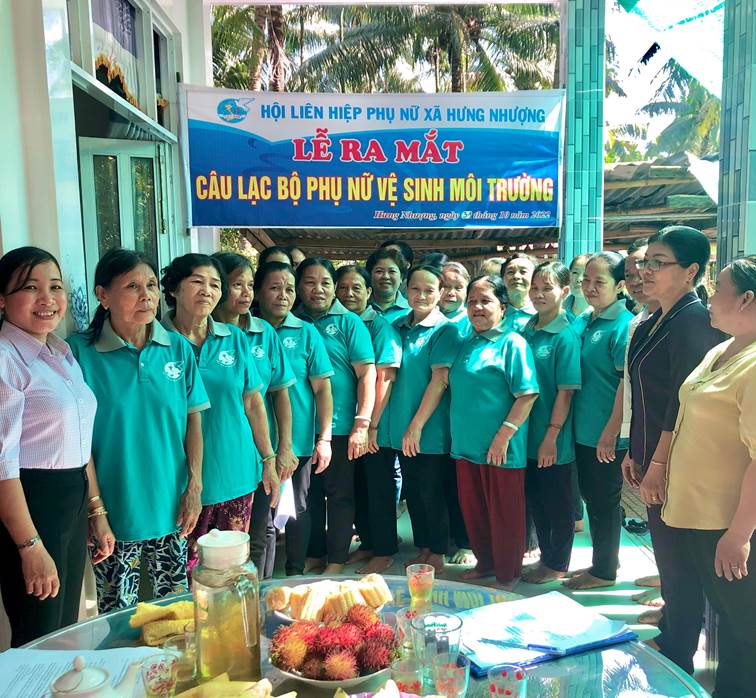 Thấy được yêu cầu đó, sau thời gian chuẩn bị, ngày 02/10/2022, “Câu lạc bộ phụ nữ với môi trường” đầu tiên của xã được thành lập tại ấp Hưng An Đông, xã Hưng Nhượng với 25 thành viên là hội viên phụ nữ của ấp. Ban chủ nhiệm có 3 thành viên điều hành hoạt động theo quy chế, đảm bảo hiệu quả. Mỗi tháng ra quân ít nhất 02 lần, mục đích của câu lạc bộ là góp phần làm sạch môi trường, xử lý bảo đảm vệ sinh môi trường, tuyên truyền góp phần nâng cao ý thức của người dân trong việc bảo vệ môi trường. Nhờ đó, trên đường làng, ngõ xóm tình trạng vứt rác bừa bãi giảm đáng kể, đường làng sạch đẹp vì không còn bừa bãi các loại rác sinh hoạt. Bên cạnh đó, các chị còn hướng dẫn chị em bỏ rác đúng nơi quy định, các chị em phụ nữ còn tự đào hố rác gia đình để xử lý rác thải hữu cơ… Với những việc làm thiết thực, câu lạc bộ đã thu hút thêm thành viên tham gia, hiện có trên 30 chị tham gia vào Câu lạc bộ phụ nữ với môi trường của ấp Hưng An Đông.