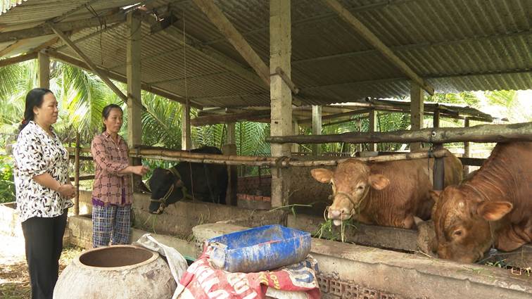 Sau đại dịch, gia đình chị Phạm Thị Hồng Phượng, ấp 1, xã Sơn Đông, có 03 công đất trồng bưởi da xanh bị rụng hoa, trái non, gia đình rơi vào hoàn cảnh khó khăn không có việc làm ổn định. Chị đã được tổ TK&VV tư vấn và được NHCSXH Bến Tre cho vay 50 triệu đồng để giải quyết việc làm mua 02 bò sinh sản về nuôi và làm mới chuồng trại. Hơn 01 năm nay, từ 02 con bò sinh sản nay đã lên 04 con bò sinh sản. Nhờ được vay vốn của NHCSXH và được hỗ trợ giảm 2% lãi suất, áp dụng chính sách hỗ trợ lãi suất theo Nghị định số 36/2022/NĐ-CP của Chính Phủ, gia đình chị Phượng mở rộng trang trại cho thu nhập ổn định.