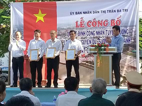Công bố quyết định công nhận tuyến đường văn minh Nguyễn Du và Sương Nguyệt Anh thuộc khu phố 1 (công trình thi đua Đồng khởi mới)