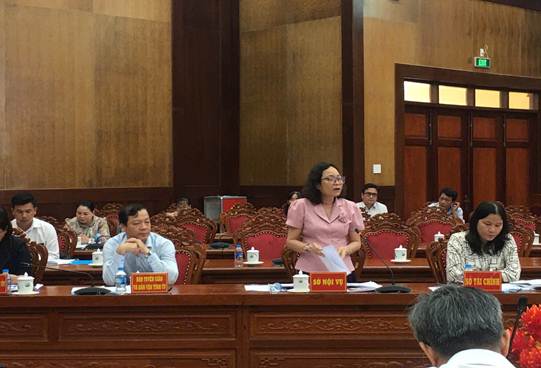 Bà Nguyễn Thị Ngọc Thi, Phó Giám đốc Sở Nội vụ giải đáp các ý kiến thắc mắc của đại biểu