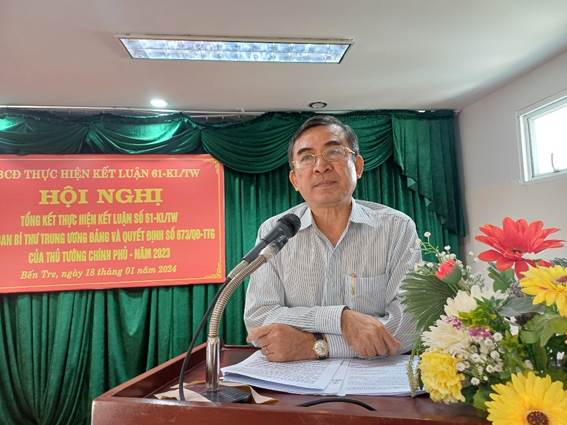 Phát biểu chỉ đạo hội nghị, Trưởng ban Dân vận Tỉnh uỷ ghi nhận và đánh giá cao kết quả thực hiện Kết luận 61-KL/TW của các huyện, thành phố. Thời gian tới, đề nghị Ban chỉ đạo các huyện, thành phố tiếp tục duy trì thực hiện quy chế hoạt động của Ban Chỉ đạo, nhất là các cuộc họp lệ kỳ, công tác phối hợp giữa các thành viên. Trong xây dựng thực hiện các nhiệm vụ của Ban Chỉ đạo cần đưa cụ thể nội dung hưởng ứng và phát động cao điểm thi đua Đồng Khởi mới tạo thành phong trào sâu rộng trong các cấp Hội Nông dân năm 2024 theo chủ trương của Tỉnh ủy.