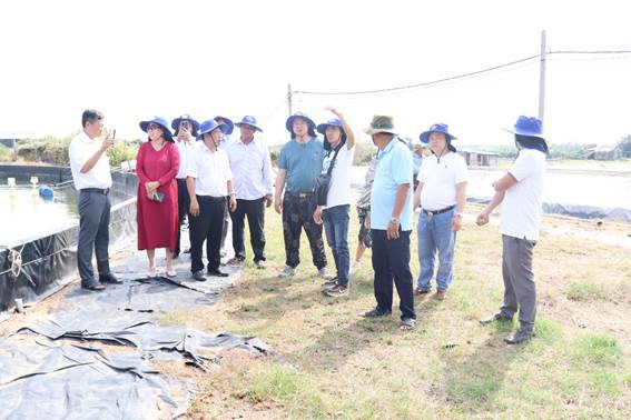 Đoàn tham quan và làm việc tại cơ sở nuôi tôm công nghệ cao của anh Đặng Văn Bảy, xã Thạnh Phong huyện Thạnh Phú