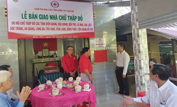 Trước ngày diễn ra Hội nghị giao ban, Cụm đã tổ chức bàn giao “Nhà Chữ thập đỏ” cho hộ ông Nguyễn Văn Sáng, xã Hưng Phong, huyện Giồng Trôm, tỉnh Bến Tre, là hộ khó khăn về nhà ở. Ông Sáng là Chủ tịch Hội Chữ thập đỏ xã Hưng Phong từ năm 1976 đến nay và là tấm gương tiêu biểu cho hoạt động Chữ thập đỏ. Kinh phí xây dựng nhà là 110 triệu đồng, trong đó Cụm thi đua hỗ trợ 60 triệu đồng, còn lại do địa phương và gia đình đóp góp.