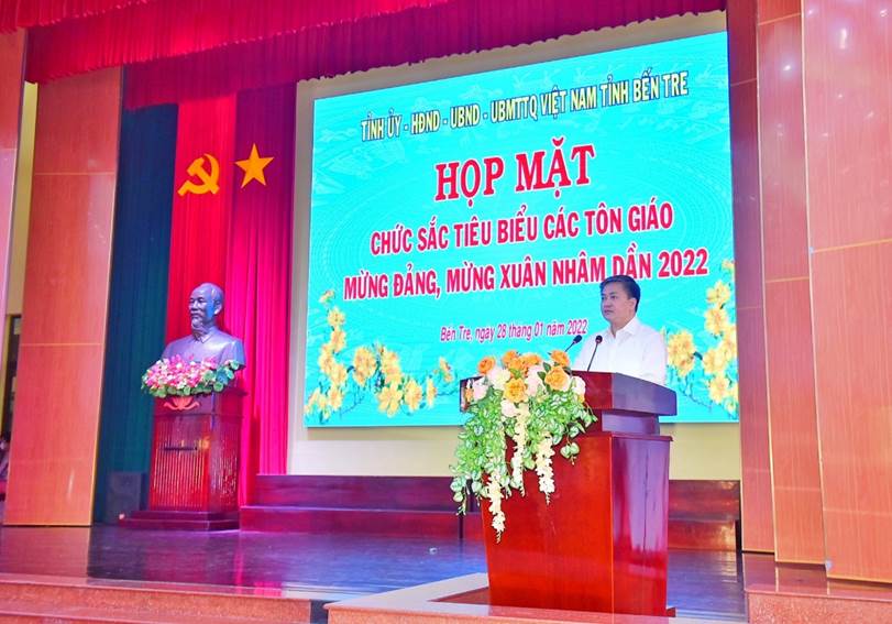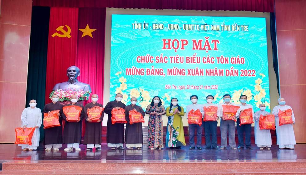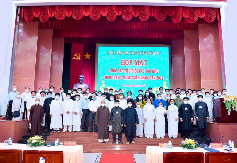 Nhằm tạo điều kiện để Lãnh đạo tỉnh gặp gỡ, thăm hỏi, chúc mừng năm mới, ghi nhận những công lao đóng góp của các tổ chức tôn giáo, chức sắc và đồng bào có đạo vào sự nghiệp phát triển tỉnh nhà năm 2021. Ngày 28/01/2022, Tỉnh ủy, Hội đồng nhân dân, Ủy ban nhân dân, Ủy ban MTTQ Việt Nam tỉnh Bến Tre phối hợp tổ chức Họp mặt chức sắc tiêu biểu các tôn giáo mừng Đảng, mừng Xuân Nhầm Dần năm 2022.