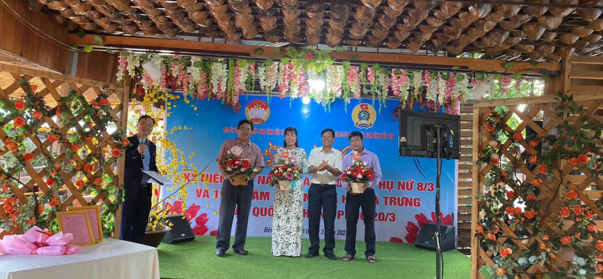 tặng hoa cho nữ cán bộ, công chức, đoàn viên của cơ quan