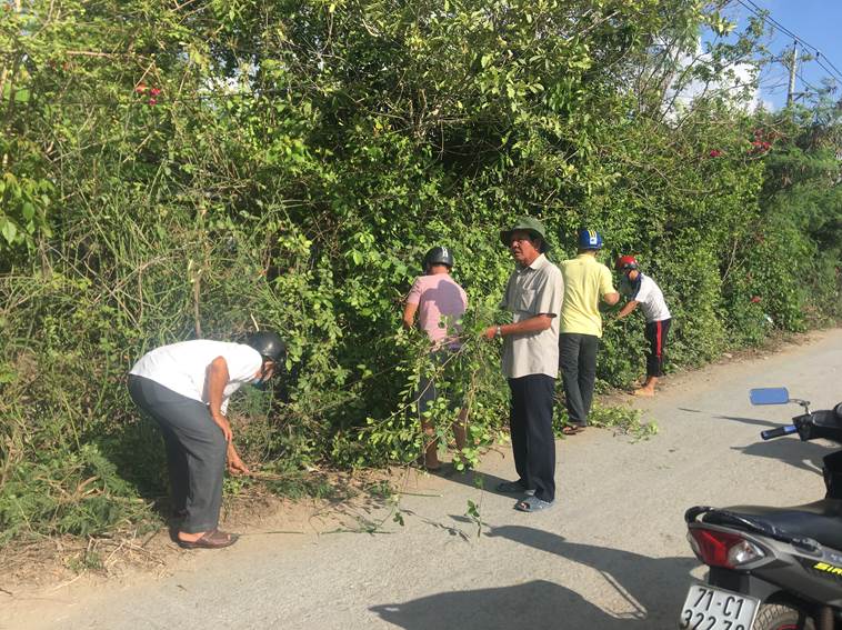 Theo kế hoạch, cán bộ, đảng viên, đoàn viên, hội viên xuống vận động và hỗ trợ người dân cùng thực hiện các công trình phần việc như: Vận động hộ dân mắc 30 bóng đèn thắp sáng, phát hoang bụi rậm, cắt tỉa hàng rào trước ngõ tuyến đường chính của ấp chiều dài 2000m. Tạo cảnh quang môi trường sạch, đẹp ở khu dân cư, tạo thông thoáng cho người dân đi lại, đảm bảo an toàn giao thông.