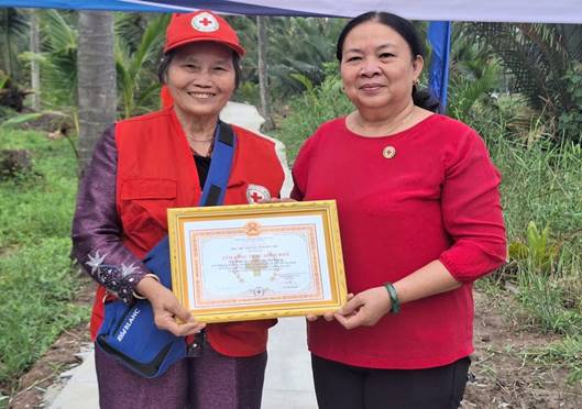 Để ghi nhận sự đóng góp quý báu của Hội Chữ thập đỏ Thiện Tâm quận 11, TP.HCM, bà Nguyễn Thị Đèo – Phó Chủ tịch thường trực tỉnh Hội đã trao tặng Tấm lòng vàng cho đơn vị tài trợ, đồng thời trao tặng giấy khen của Ủy ban nhân dân huyện cho bà Trần Thị Nhung đã có những đóng góp tích cực cho hoạt động xây dựng công trình nhân đạo tại địa phương./.