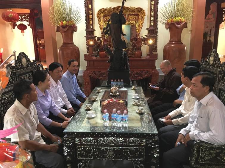 Dịp này, Đoàn đến thăm, chúc Tết Ban trị sự Phật giáo Hòa Hảo, xã An Hòa Tây; Chùa Bửu Sơn, xã An Thủy; Chùa Hưng Bảo Tự, xã Tân Thủy. Tại những nơi đến, Phó Bí thư Thường trực Huyện ủy gửi lời chúc mừng năm mới đến các vị chức sắc, tín đồ Phật giáo và toàn thể giáo dân trong huyện năm mới sức khỏe, hạnh phúc.