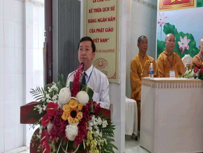 Phát biểu tại buổi lễ, Bí thư Huyện ủy Nguyễn Văn Trung đã ghi nhận và biểu dương sự đóng góp của các thành viên Ban Trị sự Giáo hội Phật giáo Việt Nam huyện và các tăng ni, phật tử trong huyện đối với sự nghiệp xây dựng khối đại đoàn kết toàn dân, xây dựng và bảo vệ Tổ quốc trong thời gian qua. Đồng thời, mong muốn trong thời gian tới, các thành viên Ban Trị sự, tăng ni, phật tử huyện nhà tiếp tục gìn giữ và phát huy truyền thống “Hộ quốc an dân” và phương châm “Đạo pháp - Dân tộc - Chủ nghĩa xã hội”. Tiếp tục phối hợp cùng chính quyền, mặt trận, đoàn thể các cấp chăm lo gia đình chính sách, hộ nghèo, vận động đóng góp các công trình phúc lợi tại địa phương, góp phần cùng Đảng bộ và Nhân dân huyện Mỏ Cày Bắc xây dựng thành công huyện Nông thôn mới vào năm 2025.