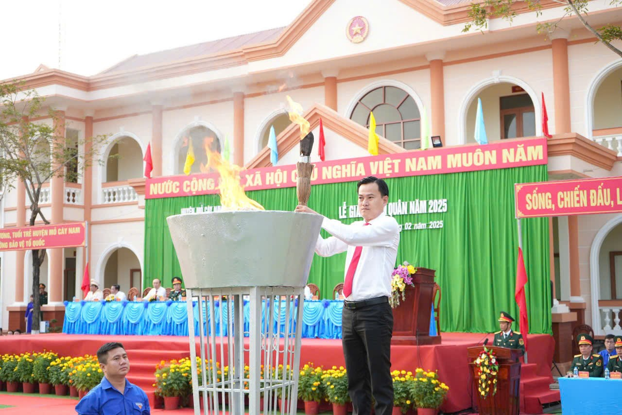 Sáng ngày 13/2/2025, huyện Mỏ Cày Nam long trọng tổ chức Lễ giao, nhận quân năm 2025. Đến dự có Quyền Bí thư Tỉnh ủy, Chủ tịch HĐND tỉnh Hồ Thị Hoàng Yến; Phó Bí thư Tỉnh ủy, Chủ tịch UBND tỉnh Trần Ngọc Tam, Chủ tịch Hội đồng Nghĩa vụ quân sự (NVQS) tỉnh; Đại tá Trần Văn Ngạn, Phó Tham mưu trưởng Quân khu 9; Trưởng Ban Nội chính Tỉnh ủy Lê Thanh Vân; Đại tá Nguyễn Văn Hoa, Chính ủy Bộ Chỉ huy Quân sự tỉnh; lãnh đạo các sở, ban ngành tỉnh; lãnh đạo huyện có Bí thư Huyện ủy Hà Quốc Cường, Phó Bí thư Thường trực Huyện ủy Nguyễn Văn Nhạn, Chủ tịch UBND huyện Võ Văn Út.