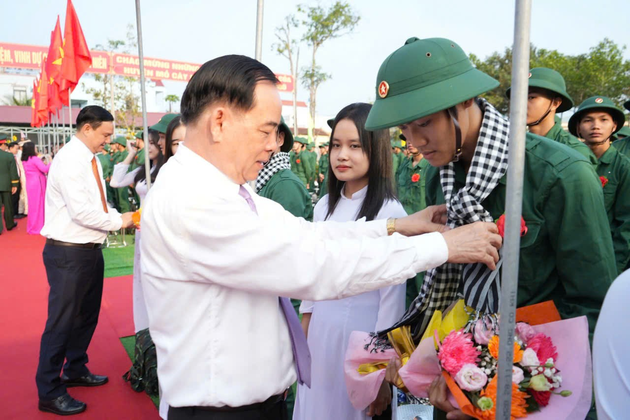 Dịp này, các đồng chí lãnh đạo tỉnh, huyện đã tặng hoa, quà động viên tân binh lên đường nhập ngũ tích cực rèn luyện, học tập, trau dồi phẩm chất chính trị, xứng đáng với niềm tin, niềm tự hào, tình cảm của cấp ủy, chính quyền và Nhân dân.