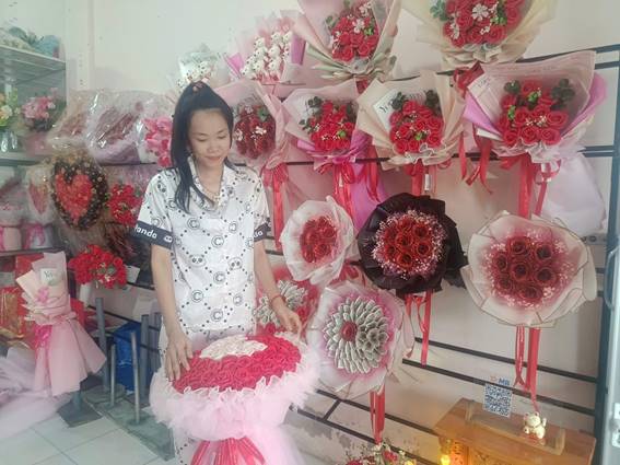 Nghĩ là làm, dịp Lễ Tình nhân năm 2019, chị nhập về 1.000 hoa hồng sáp, giấy gói và các phụ kiện làm hoa để khởi nghiệp. Chỉ trong một tháng chị đã bán hết hoa thu được lợi nhuận cao, từ đó thổi bùng lên niềm đam mê, phấn khởi, tiếp tục nhập hàng phát triển cửa hàng bán hoa sáp cho đến nay.