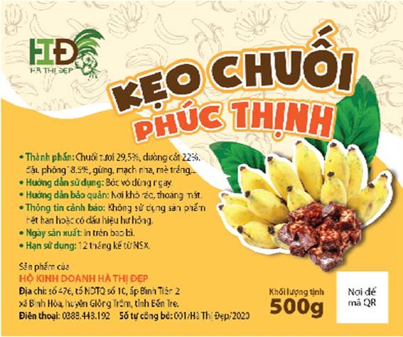 Với mong muốn mang đến cho mọi người tiêu dùng những sản phẩm kẹo chuối thơm ngon, đảm bảo chất lượng và an toàn vệ sinh thực phẩm. Từ đó, góp phần tiêu thụ và quảng bá giá trị trái dừa và chuối của ấp Bình Tiên 2 nói riêng và của xã Bình Hòa, huyện Giồng Trôm nói chung để gửi đến khách hàng trong và ngoài nước. Chị Hà Thị Đẹp, sinh năm 1969, ấp Bình Tiên 2, xã Bình Hòa đã quyết định khởi nghiệp từ làm kẹo chuối, bước đầu đem lại tín hiệu khả quan, lợi nhuận và có hướng mở rộng quy mô trong thời gian tới.