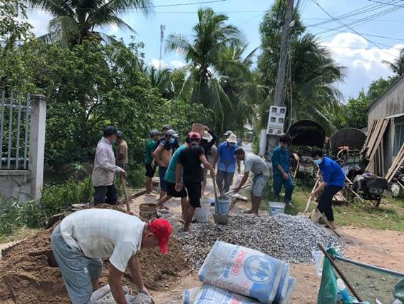 Người dân tham gia xây dựng giao thông nông thôn đường liên tổ ấp Quới Hưng