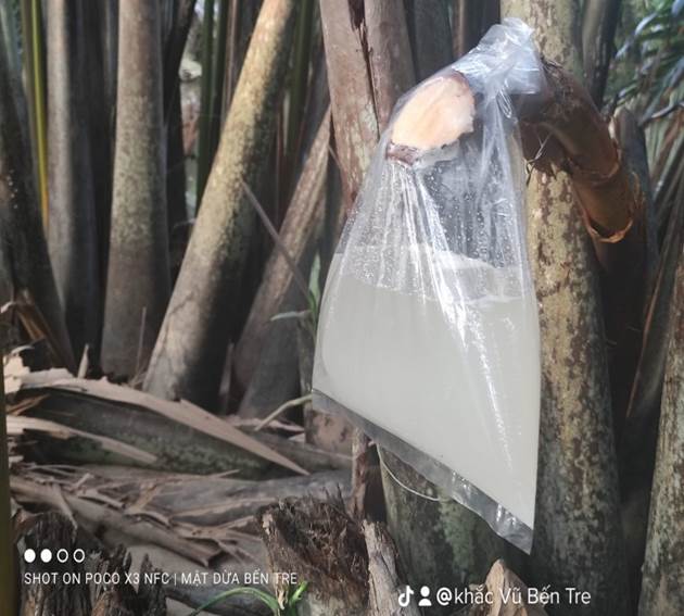 Đối với mật hoa dừa, các kỹ thuật viên của hợp tác xã sẽ chọn các bắp hoa dừa phù hợp, cắt một phần đầu rồi dùng túi ni lông cố định để chứa mật chảy ra từ cuống hoa này. Trong thời gian khoảng 6 giờ, mỗi cuống hoa dừa sẽ cho ra khoảng từ 1kg đến 1.3kg mật, quy trình lấy mật diễn ra hàng ngày, mỗi ngày sẽ lấy một lần đến khi cắt hết cuống hoa dừa.